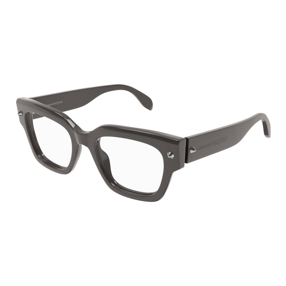 Occhiali da vista originali Alexander McQueen AM0411O. Modello uomo, di forma squadrato della collezione Alexander McQueen 2023. La montatura è in acetato riciclato. Tutti gli occhiali da vista sono originali e garantiti. Alexander McQueen, la casa del teschio, celebre per il suo stile “tormentato”, dove eros e tanathos trionfano e in cui luce e oscurità si fondono creando modelli quasi gotici, che hanno un fascino unico. Per essere sempre enigmatici e alla moda.