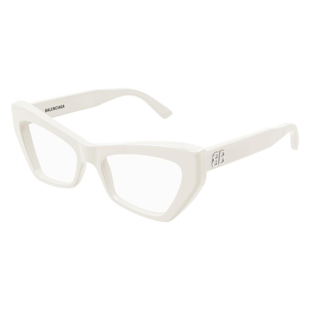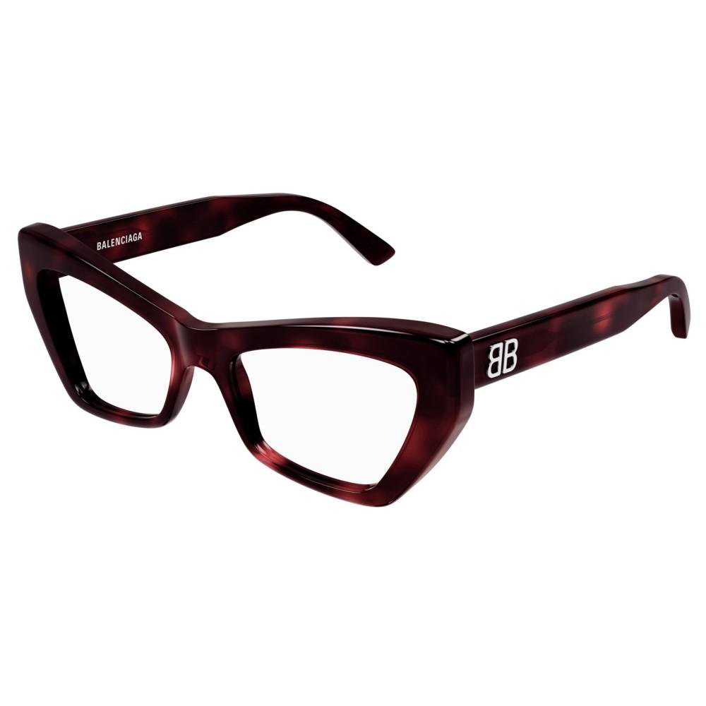 Occhiali da vista originali Balenciaga BB0296O. Modello donna, di forma cat-eye della collezione Balenciaga 2024. La montatura è in acetato riciclato. Tutti gli occhiali da vista sono originali e garantiti.