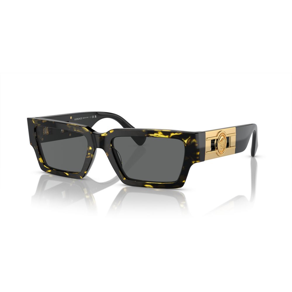 Occhiali da sole originali Versace VE 4459. Modello unisex, di forma geometrico della collezione Versace 2024. La montatura è in acetato, di colore black/dark grey. Tutti gli occhiali da sole sono originali e garantiti.