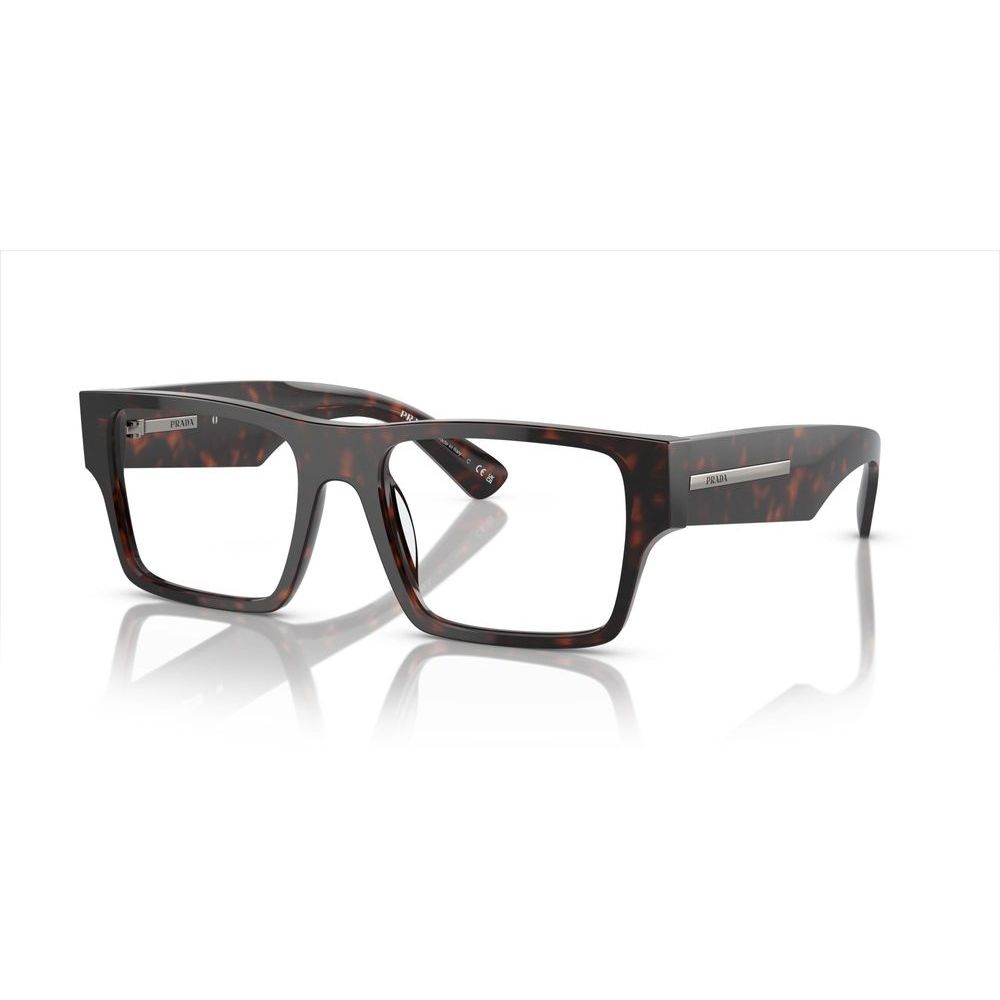 Occhiali da vista originali Prada PR A08V. Modello uomo, di forma geometrico della collezione Prada 2024. La montatura è in acetato. Tutti gli occhiali da vista sono originali e garantiti.