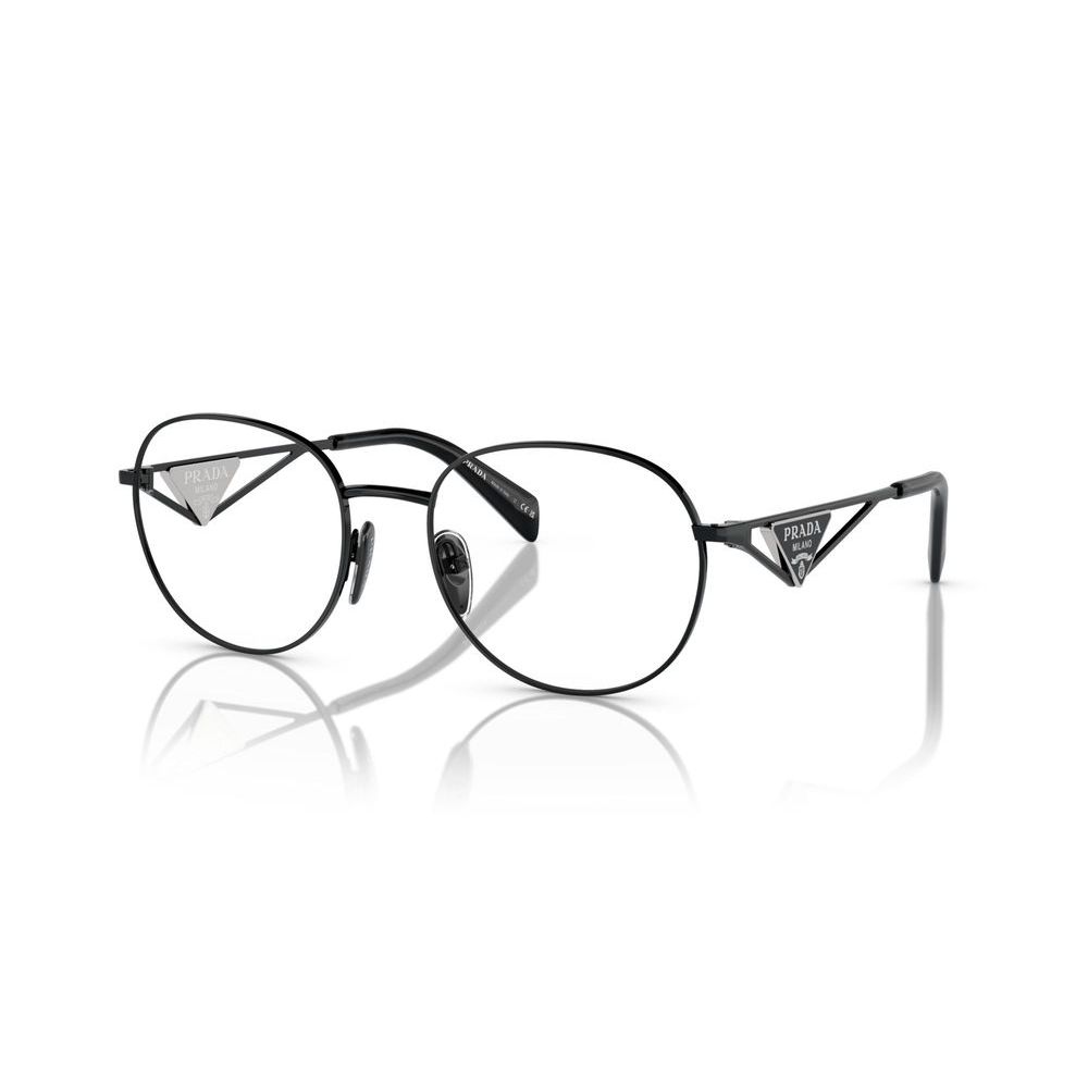 Occhiali da vista originali Prada PR A50V. Modello donna, di forma rotondo della collezione Prada 2024. La montatura è in acciaio. Tutti gli occhiali da vista sono originali e garantiti.