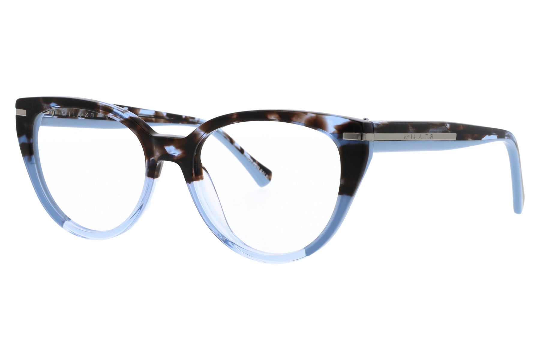 Lunettes d'origine Mila Zegna Baruffa MZ214V. Modèle femme, forme oeil de chat. Le cadre est injecté. Le modèle fait partie de la collection Piuma et les branches sont ornées de zircons.