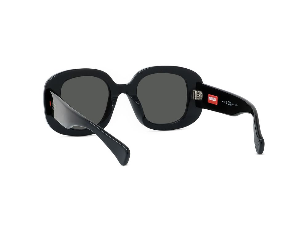 Nuova montatura audace ispirata al vintage, arricchita con fiori di boke rossi smaltati sulle aste, placca interna con logo in metallo e speciali impugnature sulle estremità.